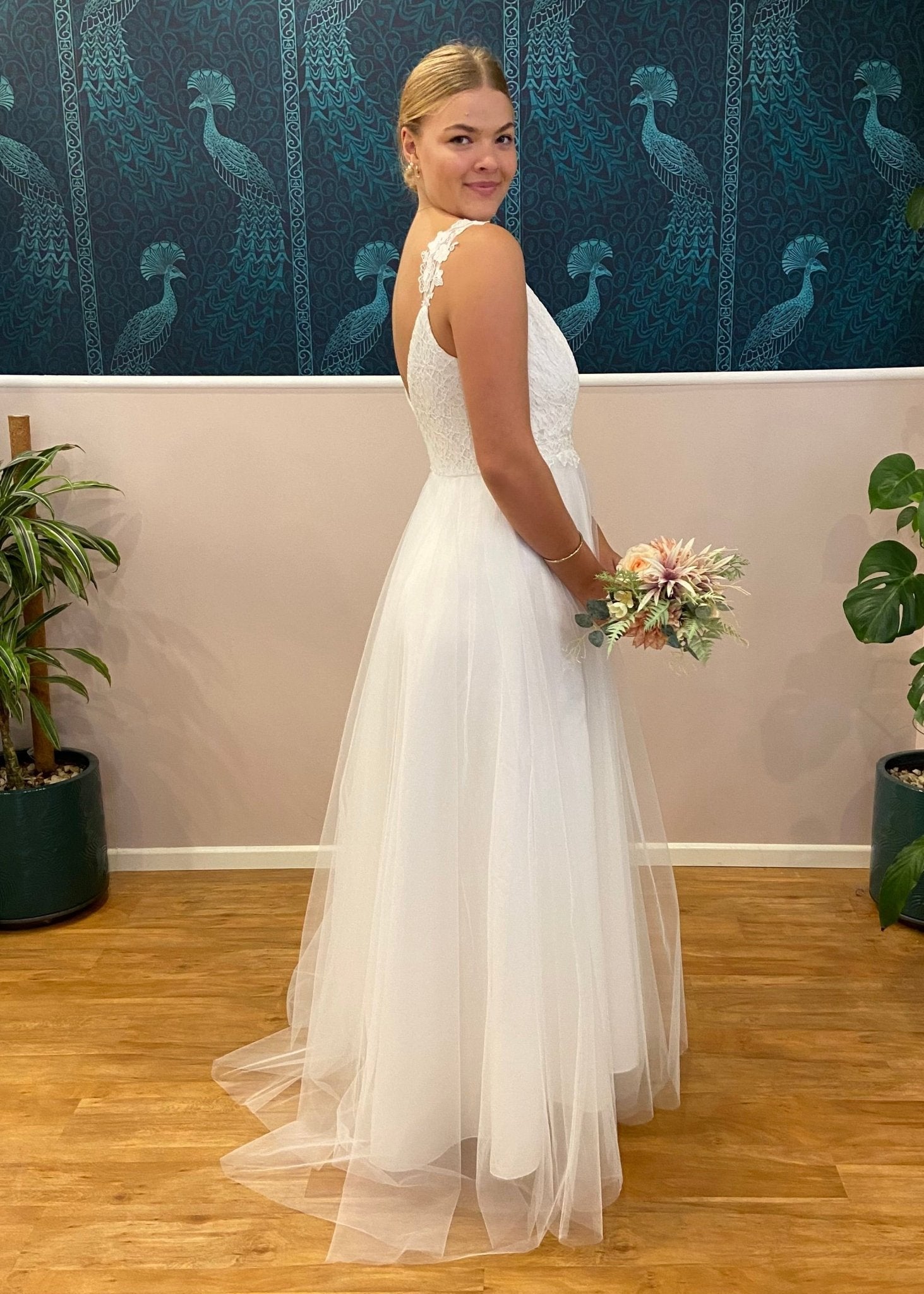 Elizabeth Tulle Wedding Dress with Lace bodice in ivory