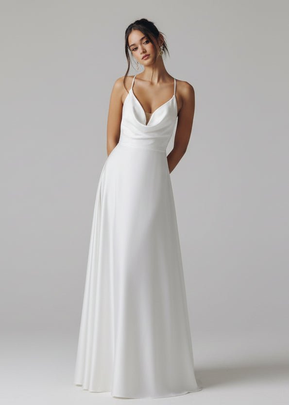 Karmen satin cowl neck a-line wedding dress in ivory s6