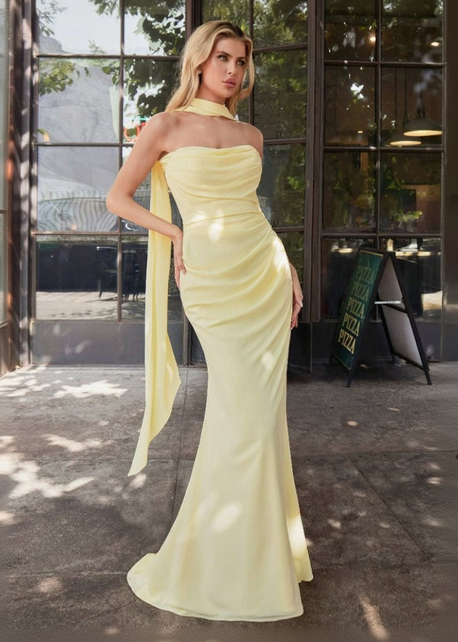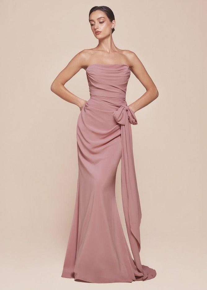Introducing the Brie multiway chiffon bridesmaid dress. What a stunning choice for your special day. This strapless gown features a flattering scoop neckline and gathered bodice, accented with elegant transitional ties under the arm for added visual interest. Crafted from luxuriously soft chiffon, the structured bodice delivers the support you need while creating a beautifully refined silhouette. Whether you're standing beside the bride, attending a wedding celebration, or dressing for a black-tie occasion, this sophisticated dress brings effortless elegance to any formal event.