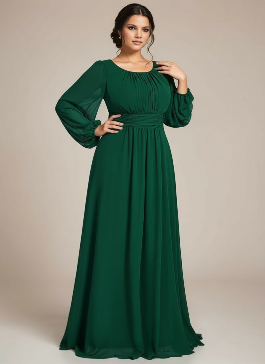Looking for a gown that’s flattering, comfortable, and versatile? This beautiful chiffon dress ticks all the boxes. Perfect as a bridesmaid dress, plus size dress, or long sleeve special occasion gown, it’s a style your wardrobe will thank you for.