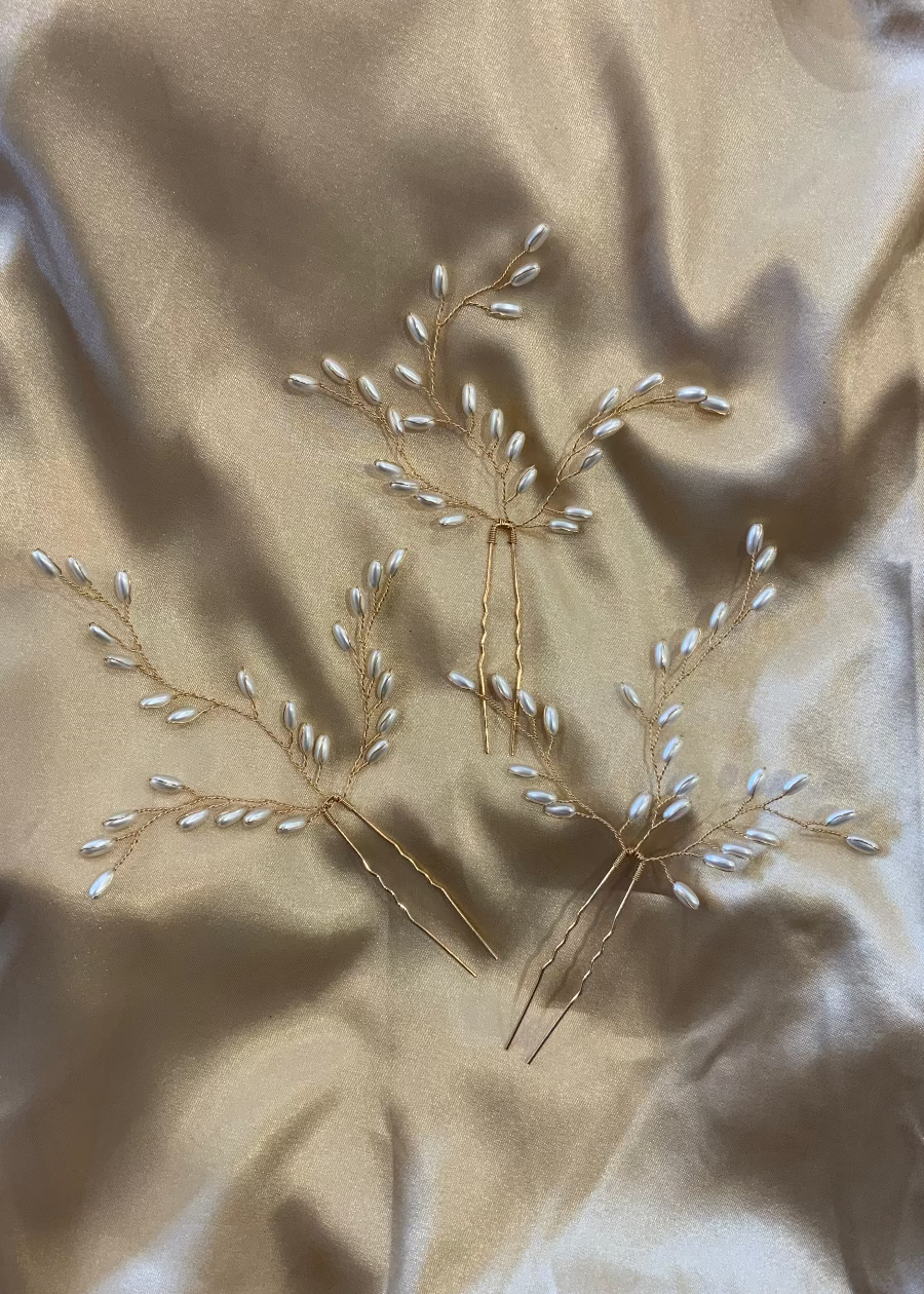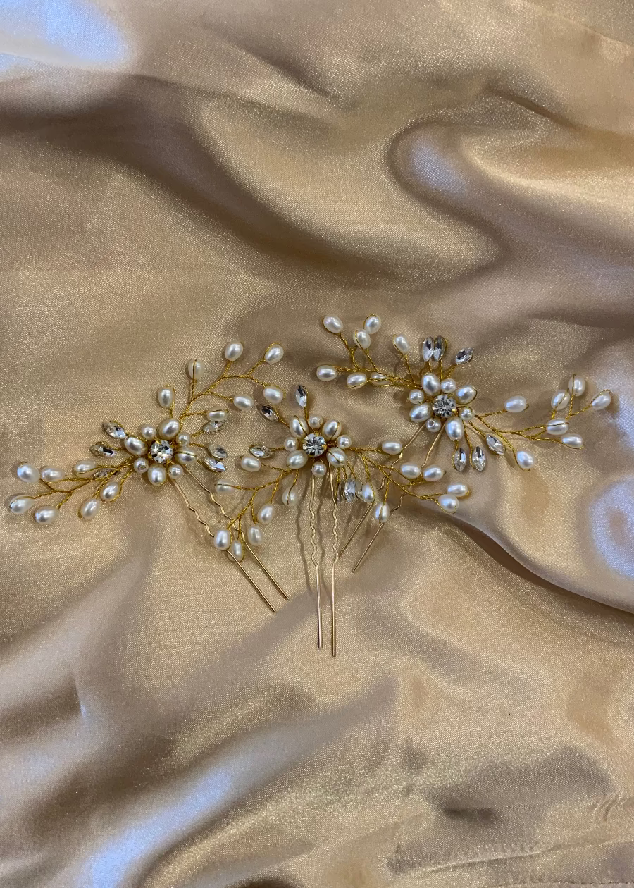Gold pearl branch hair pin set Express NZ Wide