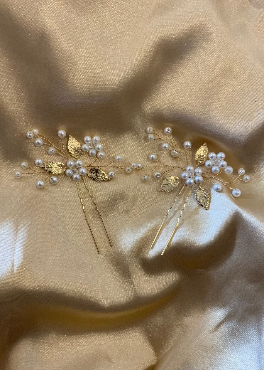 Gold leaf pearl hair pin set Express NZ Wide
