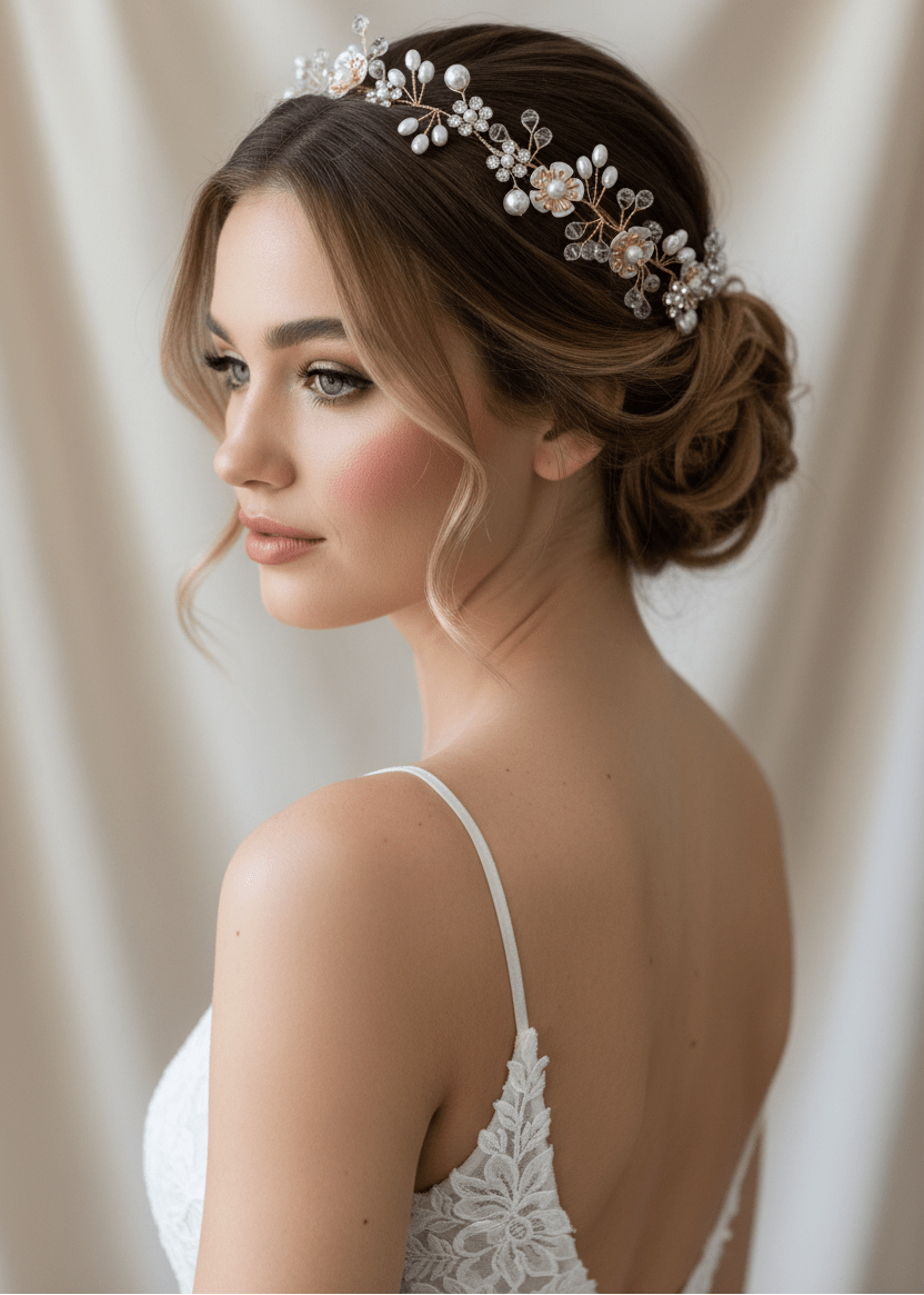 Our lovely hair accessories add that extra touch of elegance. Whether it is a wedding or an evening out, these pieces can make all the difference. They can be worn with or without a veil and can often be manipulated to suit hairstyle as desired.