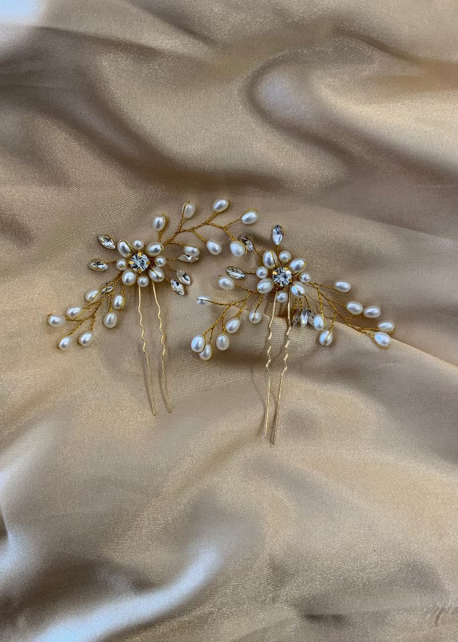 Gold rhinestone pearl hair pin 2 set Express NZ Wide