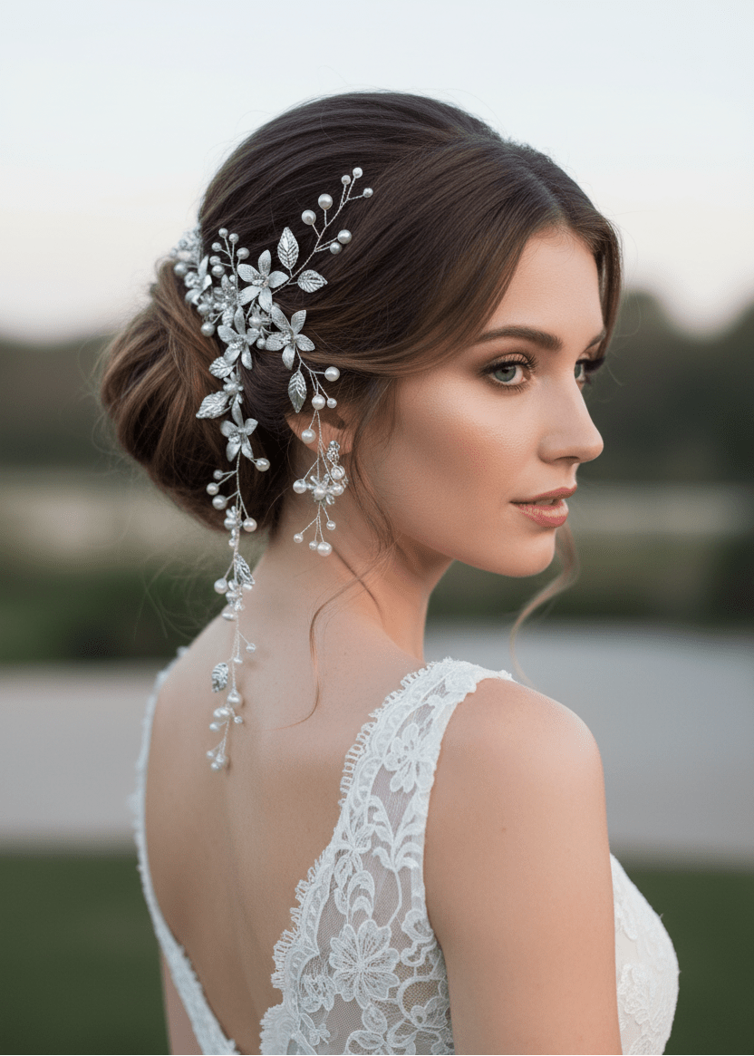 Silver and pearl floral hair accessory
