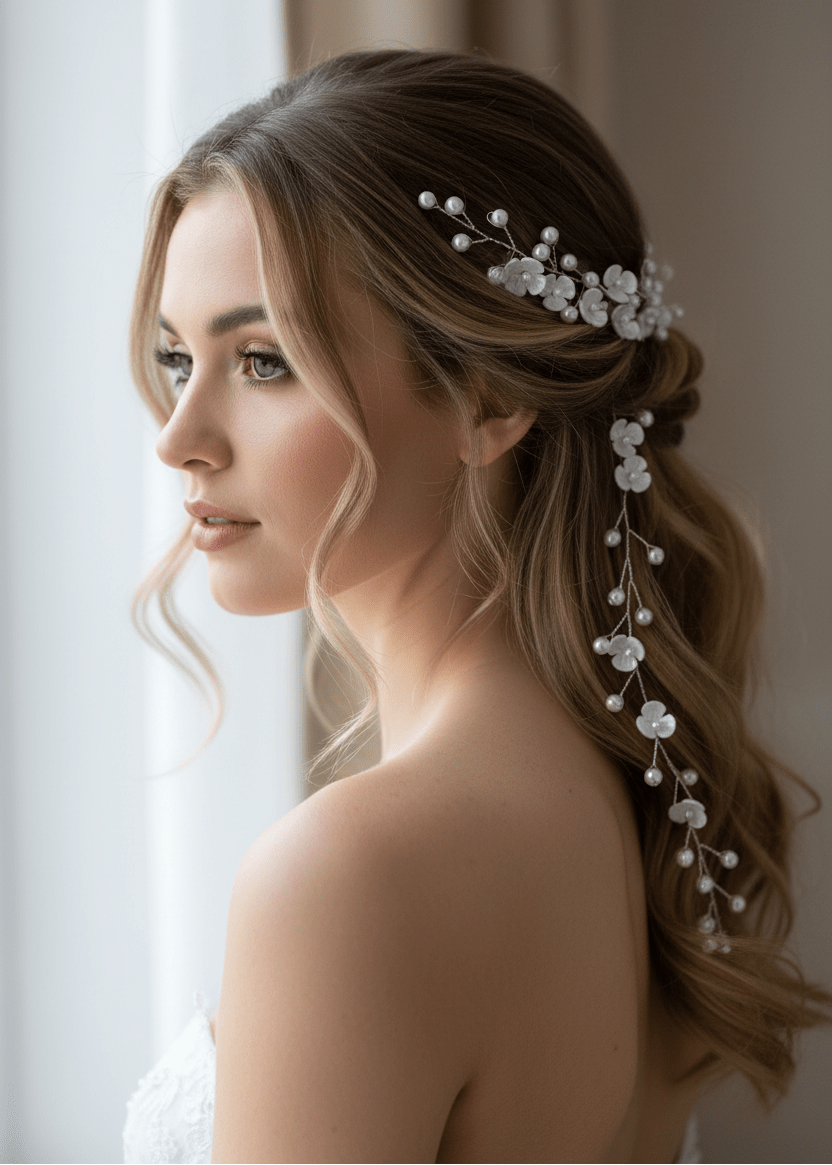 Our lovely hair accessories add that extra touch of elegance. Whether it is a wedding or an evening out, these pieces can make all the difference. They can be worn with or without a veil and can often be manipulated to suit hairstyle as desired.