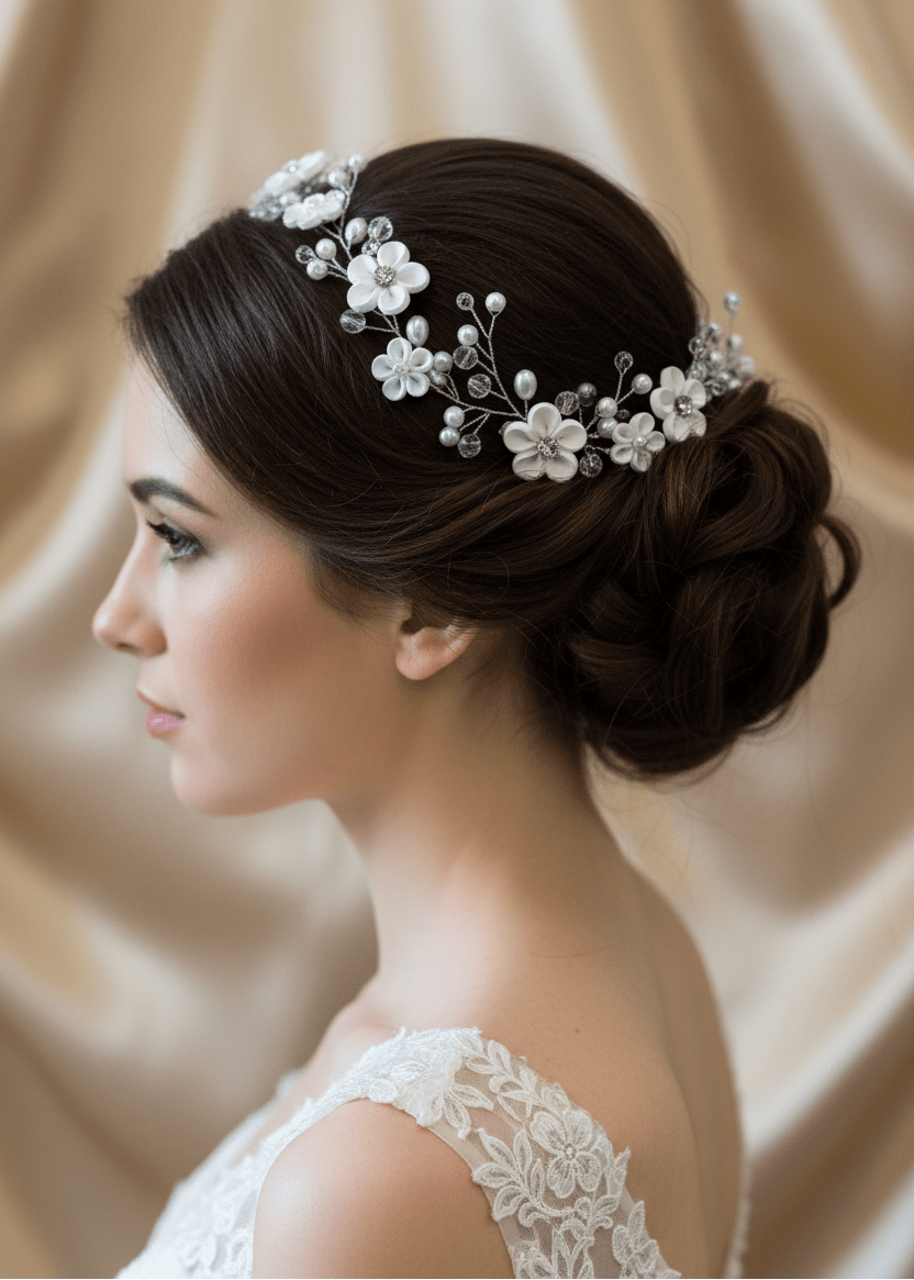 Our lovely hair accessories add that extra touch of elegance. Whether it is a wedding or an evening out, these pieces can make all the difference. They can be worn with or without a veil and can often be manipulated to suit hairstyle as desired.