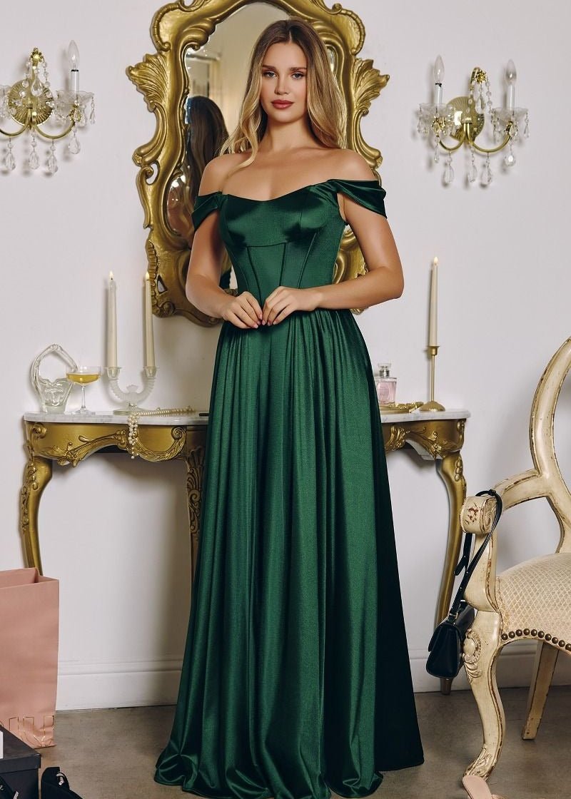 Elevate your formal wardrobe with the Maeve Satin Corset Ball Dress in Emerald, a stunning gown designed for bridesmaids, prom and special occasions. Made from structured satin with a soft lining, this A-line dress combines timeless elegance with modern versatility, ensuring you feel confident and radiant at any event.