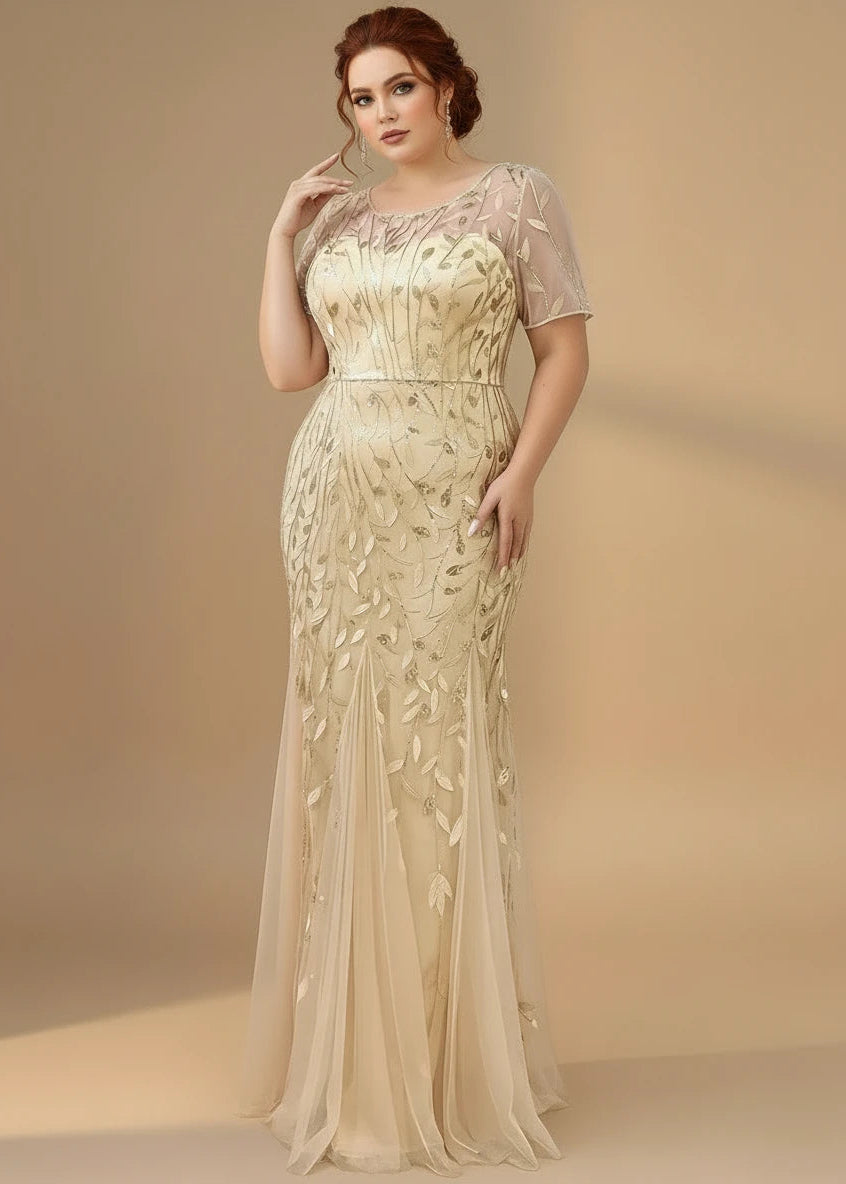 Krystal light gold tulle leaf pattern dress s12 Express NZ Wide