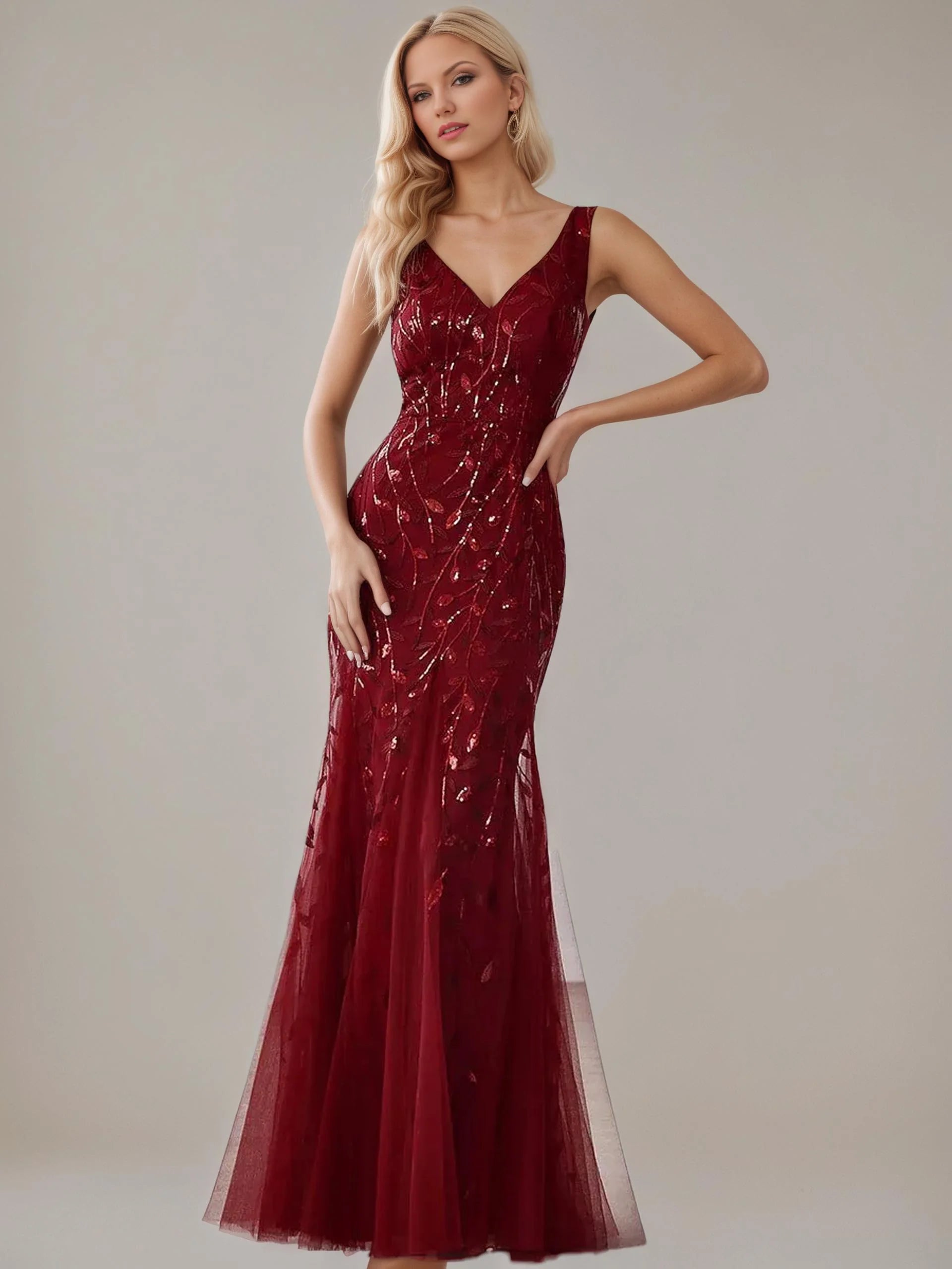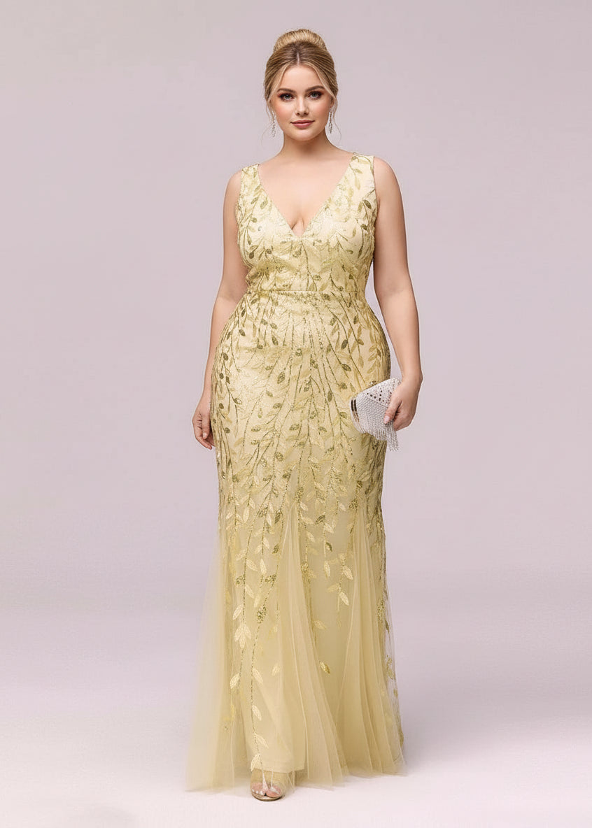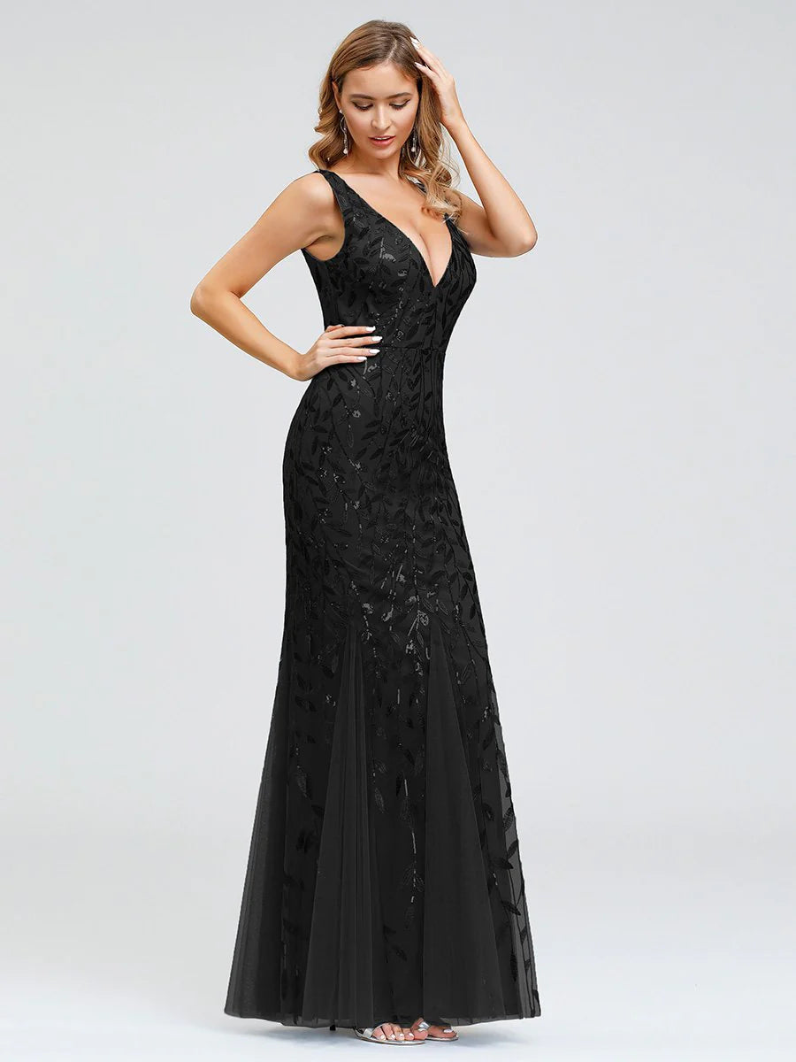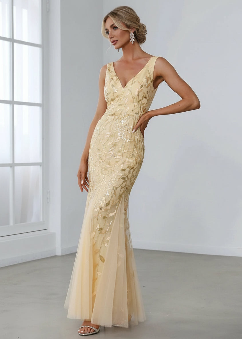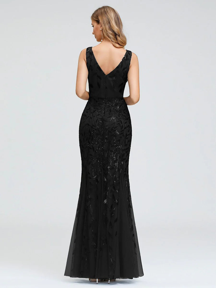 Paula sleeveless tulle and sequin trumpet mermaid dress