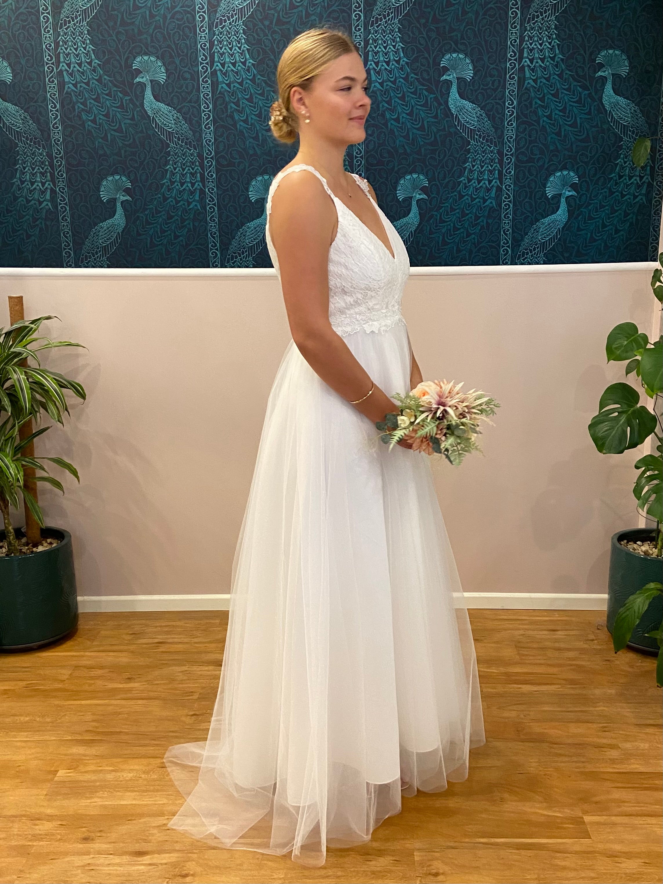 We have a great track record with sizing and are happy to assist you. Email us at baybridal.nz@gmail.com with the dress name (e.g., Malika or Tia) along with your bust and waist measurements, and we’ll guide you to the best size. We also have a helpful bust sizing video here