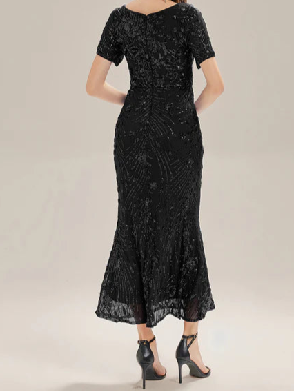 Step into elegance with this stunning formal dress, designed for the confident woman. It features shimmering sequins that sparkle under the lights, creating a captivating look. The flattering mermaid silhouette enhances your curves, while the soft fabric ensures comfort and ease of movement. Perfect for weddings, galas, or special occasions, this dress combines style with sophistication. This dress does up at the back with a zip and is lined.
