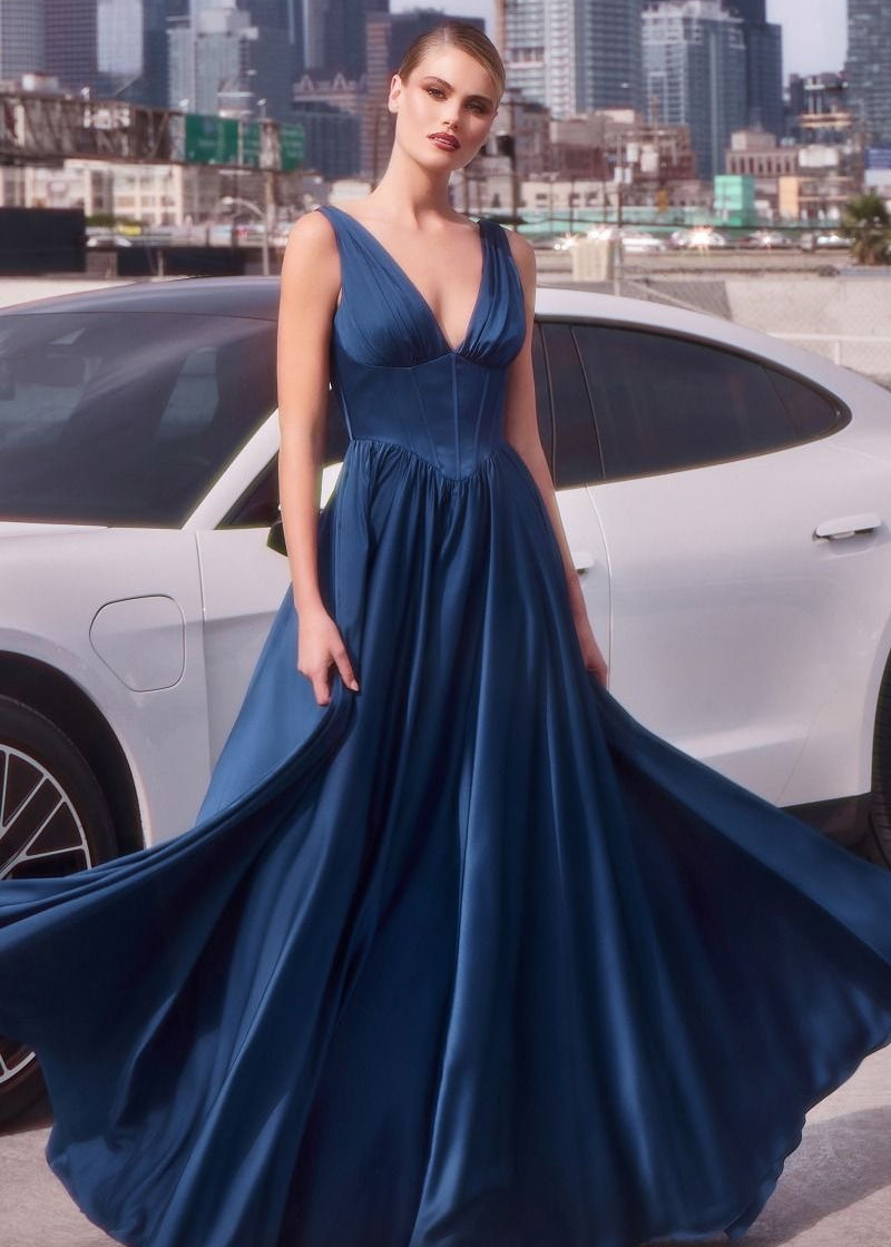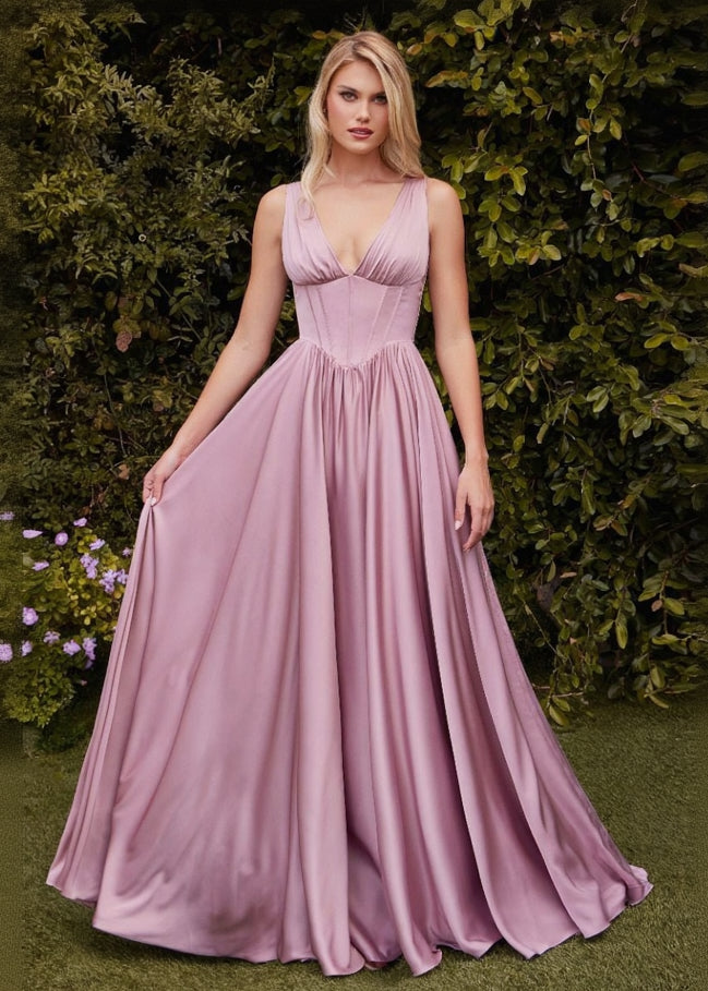 The Keira Basque Wasitline Satin bridesmaid or Ball Dress combines timeless elegance with flattering construction. This A-line gown features a graceful V-neckline with delicate straps and a beautifully pleated bodice that creates a refined silhouette. The soft satin fabric drapes luxuriously, while the structured boned bodice and lace-up corset back provide secure support and a custom fit. Versatile and sophisticated, it's an ideal choice for bridesmaids, wedding guests, formal events, or prom—delivering understated glamour for any special occasion.