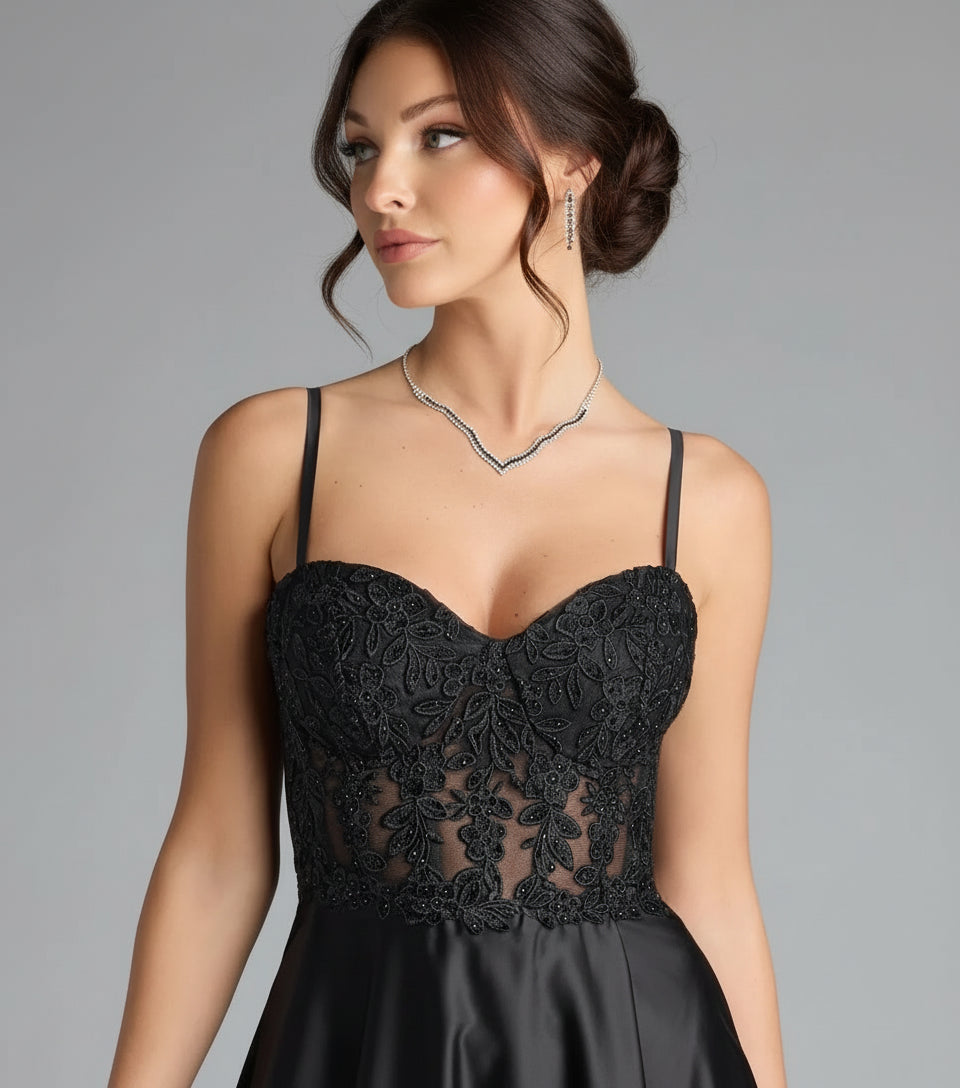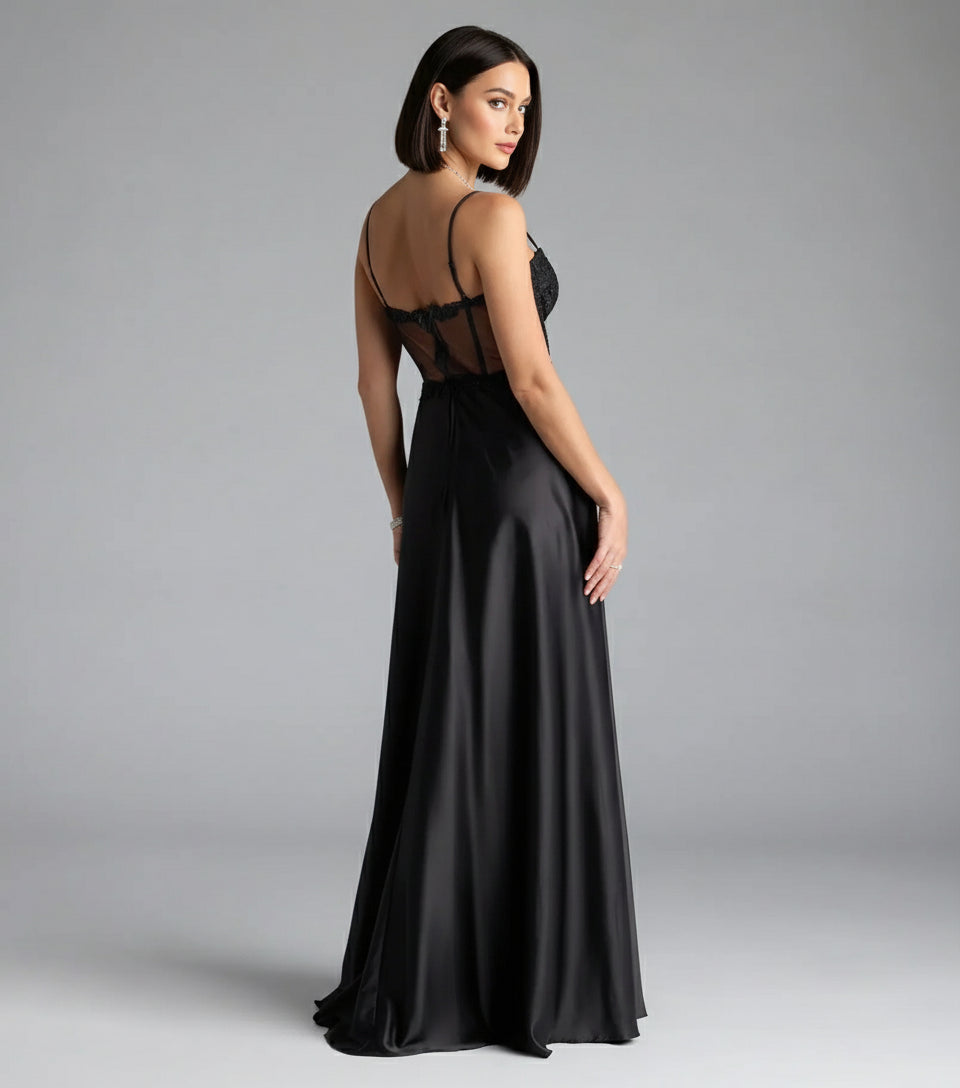 The Cara Satin Ball Dress with Lace combines elegance with modern touches. This stunning gown features a beautifully detailed lace bodice that gracefully transitions into a flowing satin skirt, creating a silhouette that's both flattering and romantic. The high front slit adds just the right amount of drama while maintaining the dress's refined sophistication. Adjustable straps ensure a perfect fit, while hidden pockets and soft satin lining keep you comfortable throughout your special event. Perfect for school balls, proms, and Formal Evening Events —this is the dress you'll feel absolutely radiant wearing.
