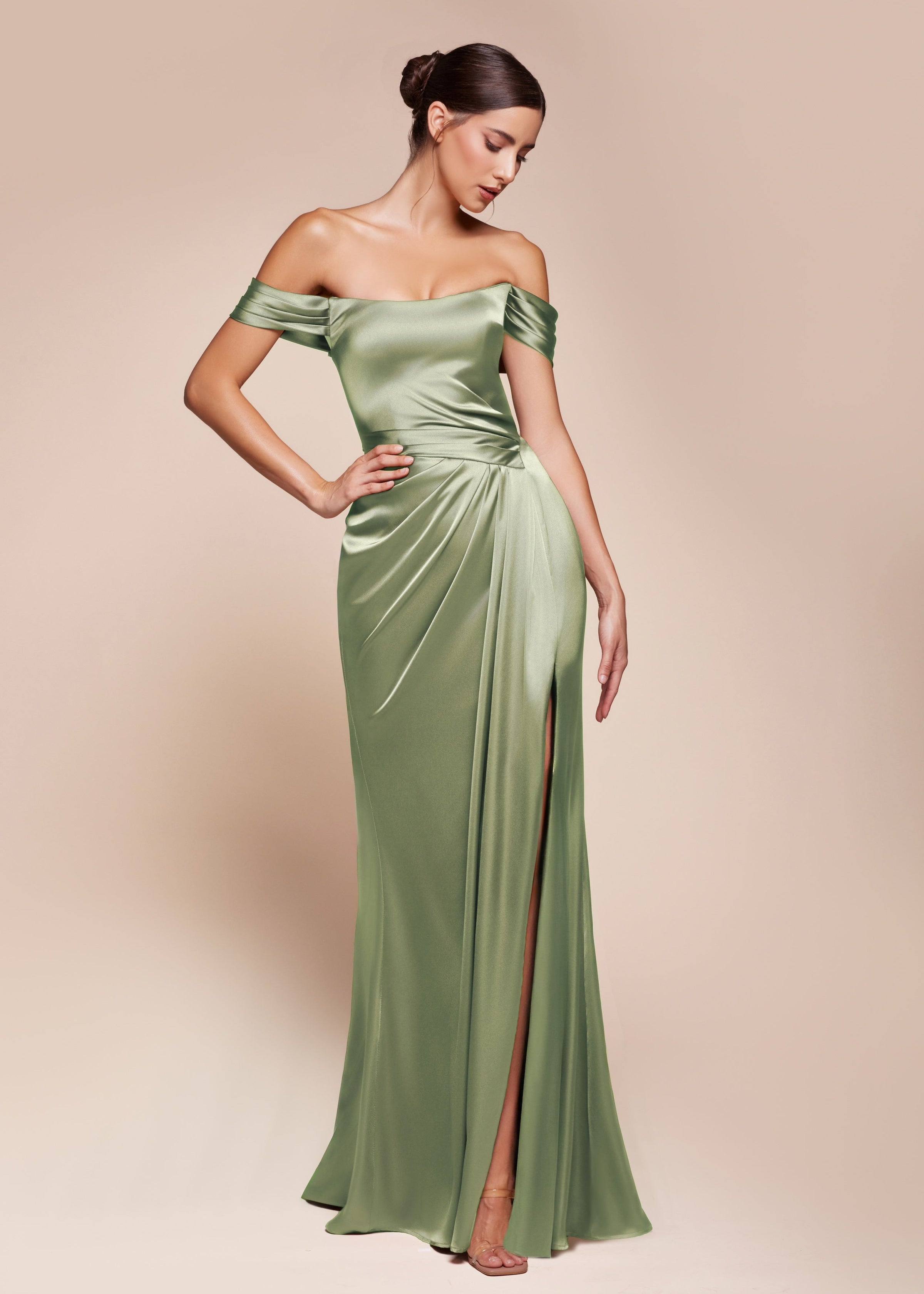 Lani Satin Off the Shoulder Bridesmaid or Ball Dress