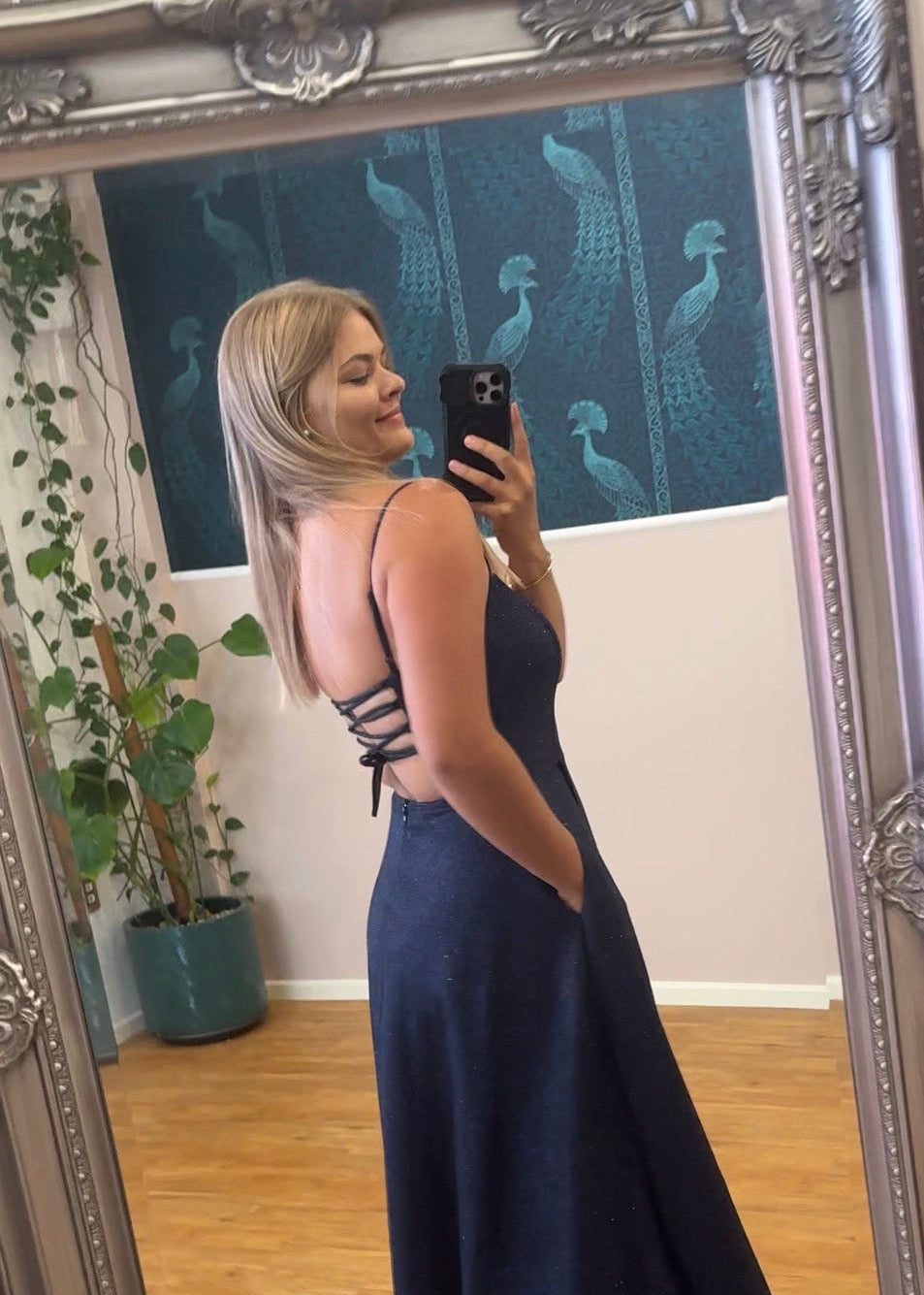 Jezabelle Sparkling A-Line Ball Dress, designed for unforgettable moments. This stunning gown features eye-catching glitter detailing, a dramatic lace-up back, and a high front wrap slit for elegant movement. Practical hidden side pockets keep your essentials close during celebrations. Perfect for formal events, proms, and special occasions, this dress delivers that showstopping princess moment you've been dreaming of. Express delivery available across NZ.