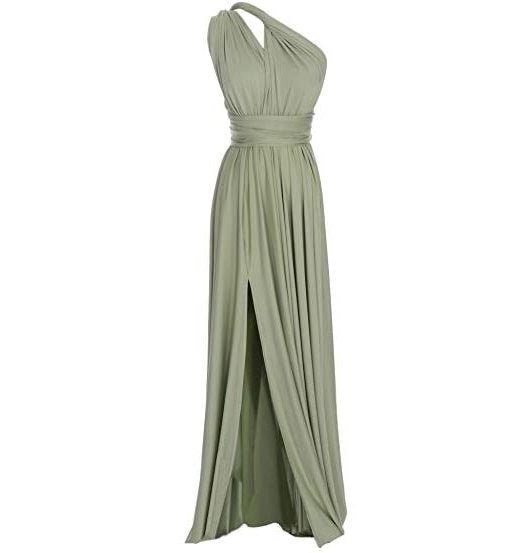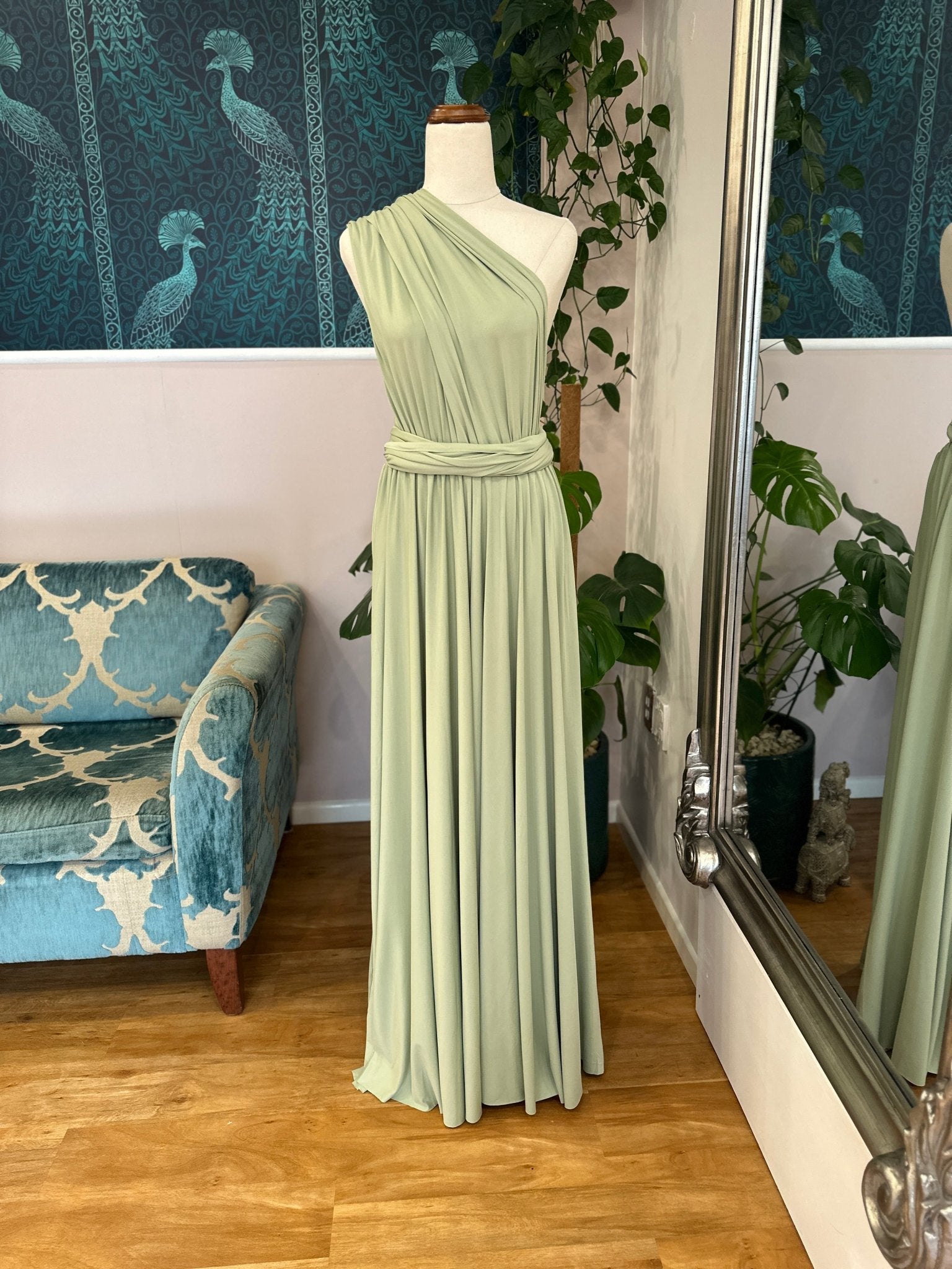 Stay in fashion always with our Full length Infinity Multiway dress in Light Olive with a split. So many ways to wear with wrap around convertible straps, with a flexible waistline and a full skirt that flatters all shapes. Such a classic and timeless gown with endless possibilities. Attend special events, bridal parties and maternity shoots in this stunning elegant infinity gown. Stocked in New Zealand ready to overnight courier.