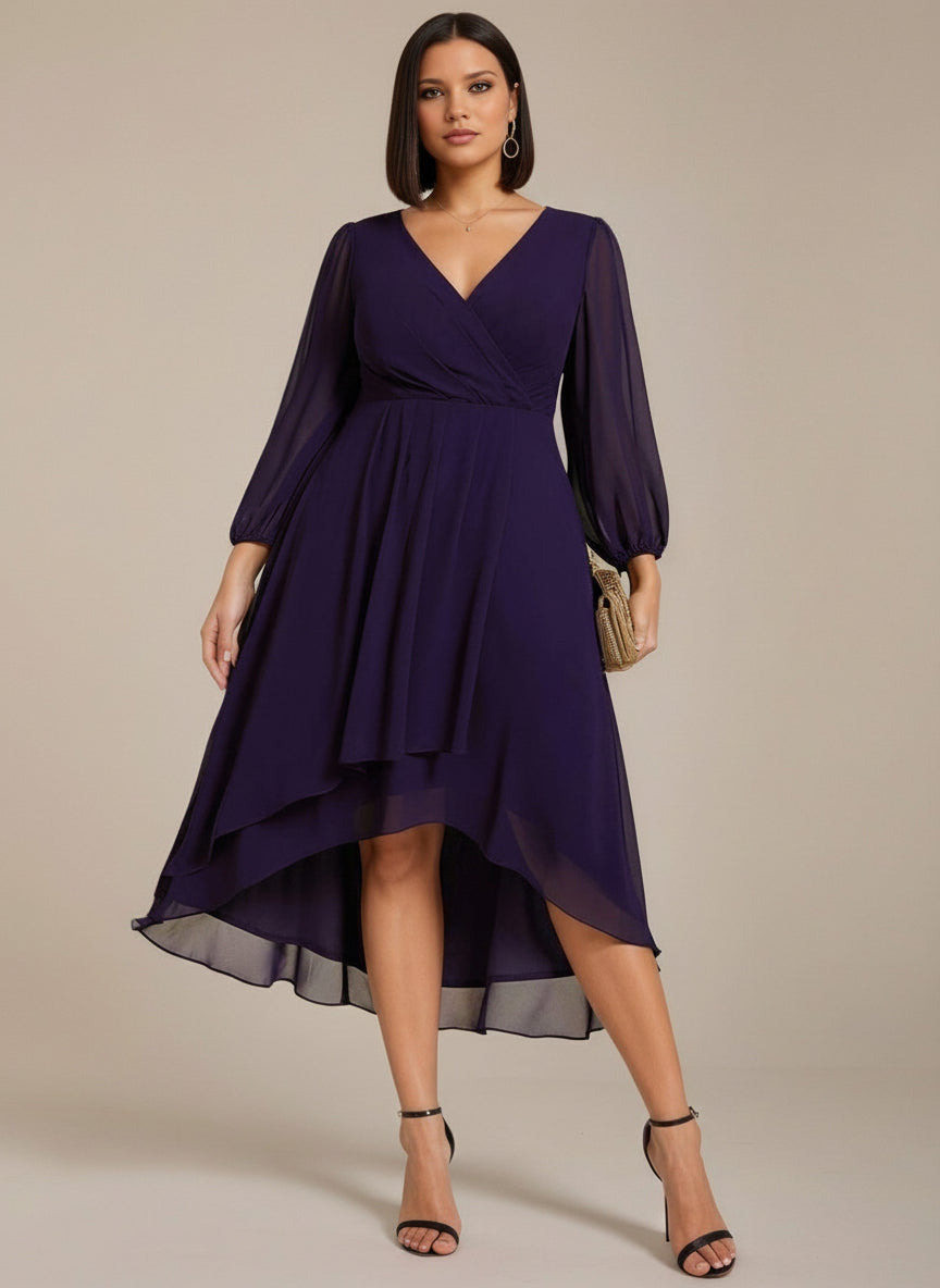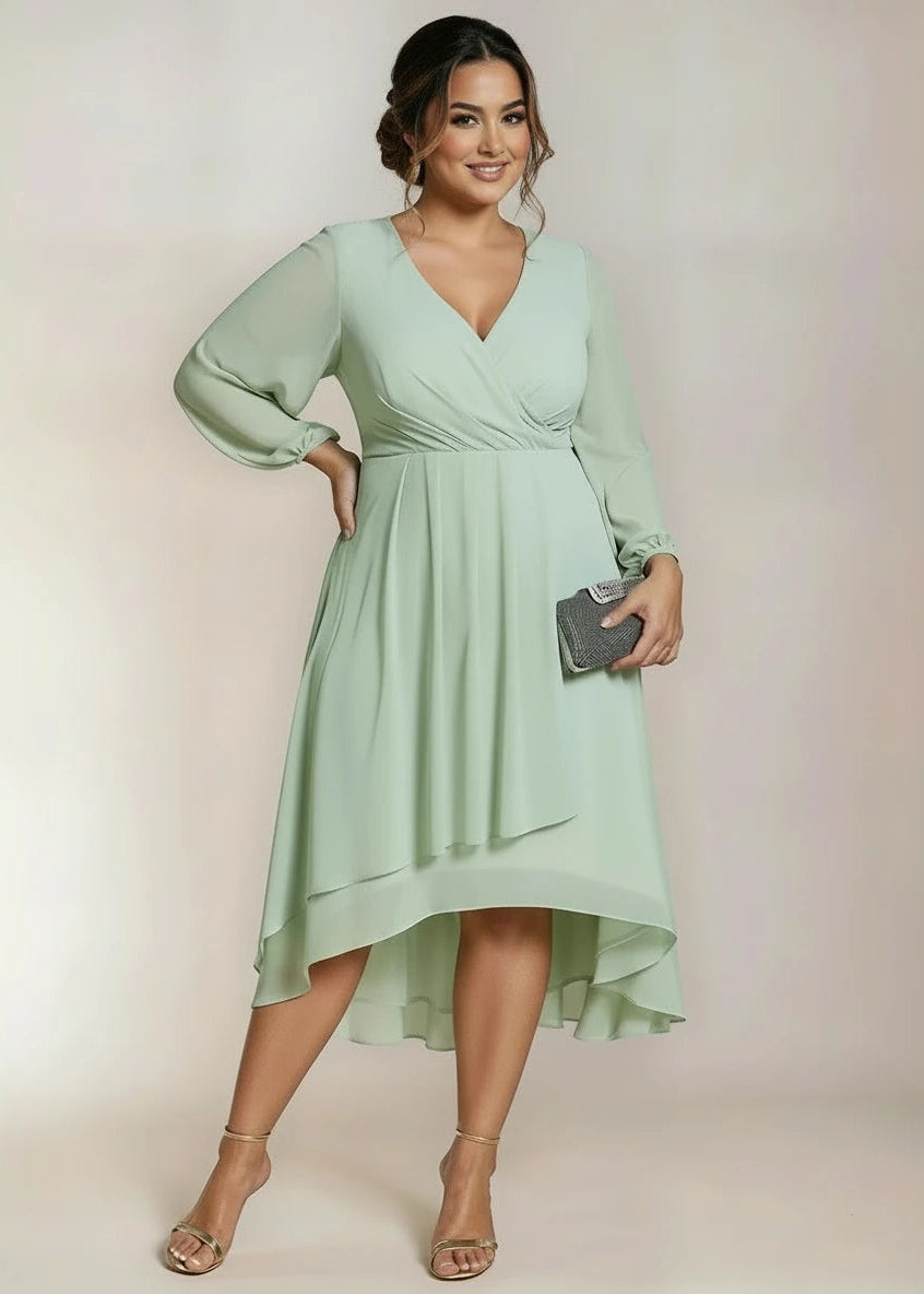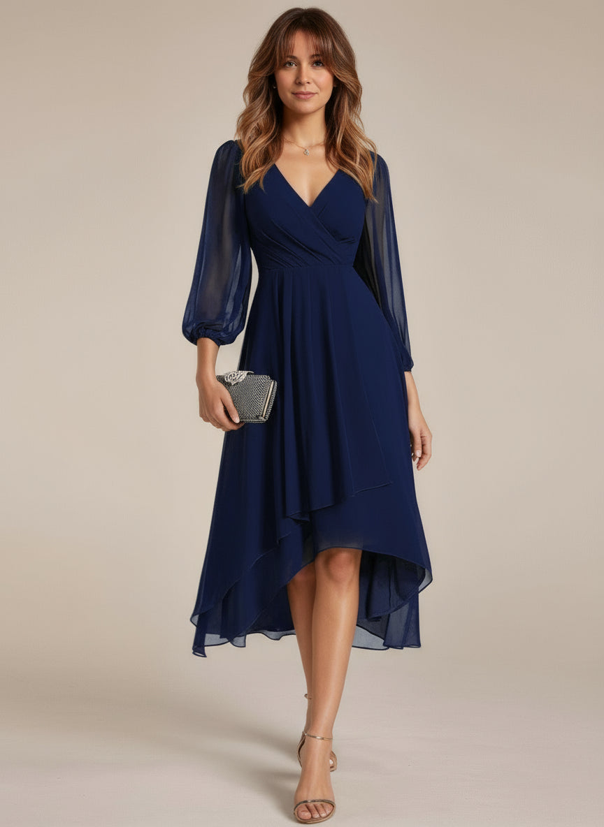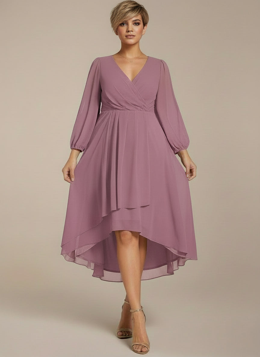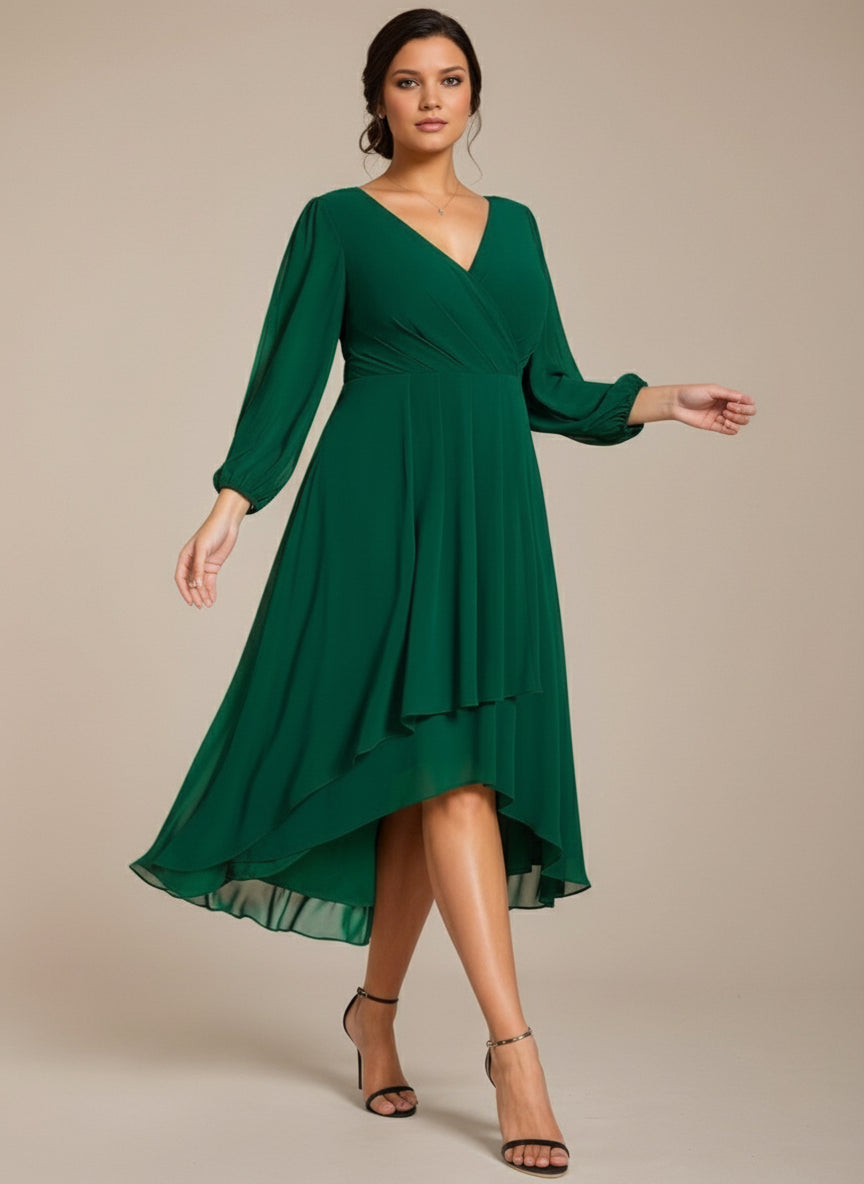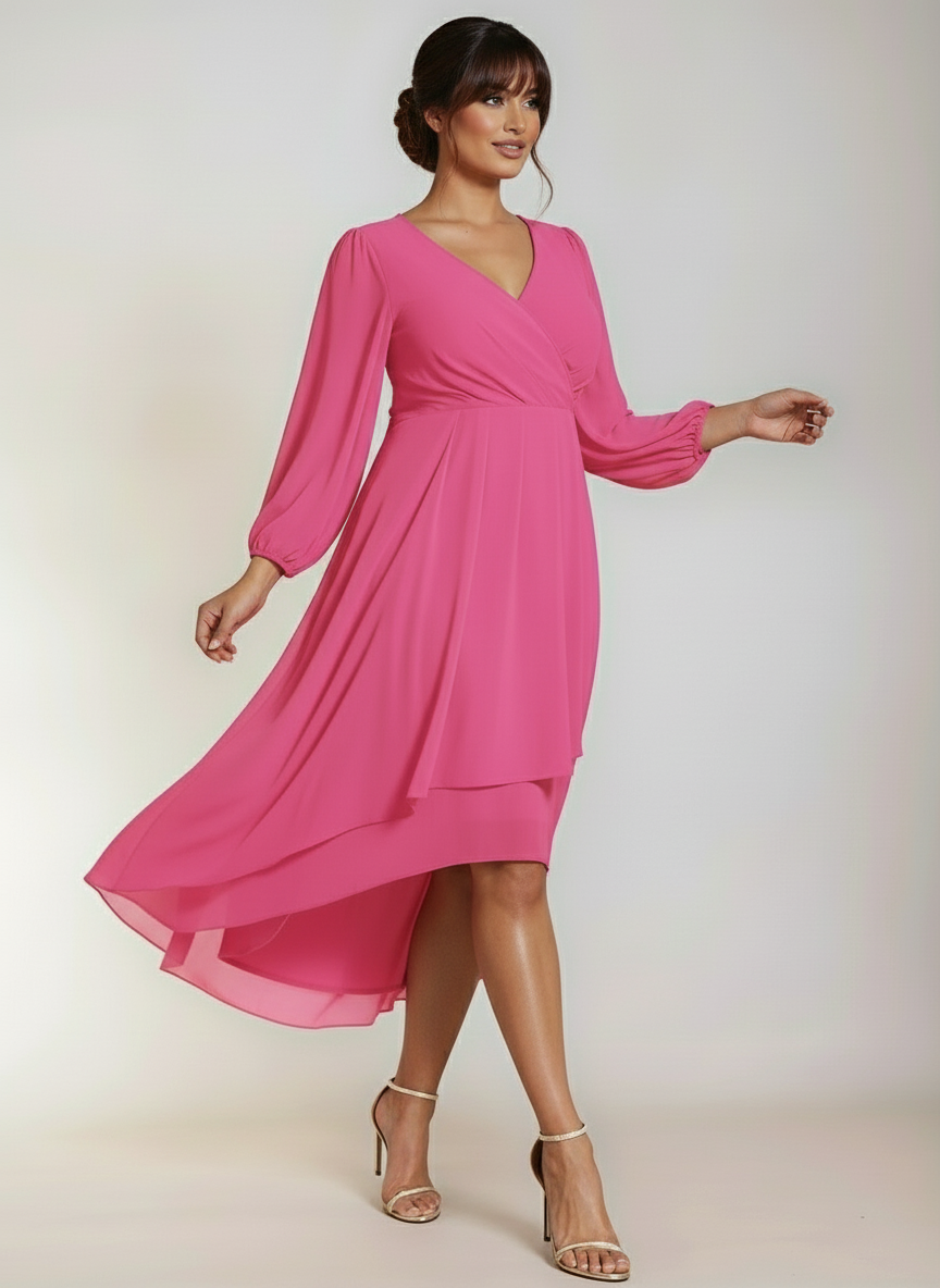 Elegant and comfortable, the Tammy midi dress is perfect for weddings and formal events. This chiffon gown features a flattering V-neckline, long sheer balloon sleeves, and a graceful A-line silhouette. The stretch-lined bodice and fully lined skirt provide all-day comfort, while the concealed zip and bra-friendly design ensure a secure, confident fit. Versatile enough to dress up or down with accessories, it's an ideal choice for Mother of the Bride, Mother of the Groom, or any special occasion guest.
