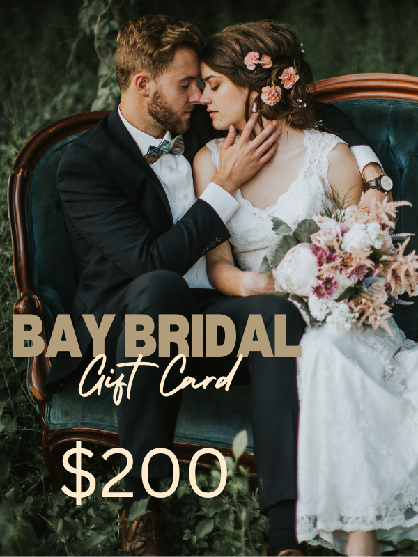 Give the gift every bride will love. The Bay Bridal and Ballgowns gift card lets them choose from our curated collection of bridal accessories, bridesmaid and wedding gowns, and more. Whether they’re saying “yes” to the dress or finalising wedding-day details, a Bay Bridal gift card makes the perfect choice for engagement or wedding gifts.