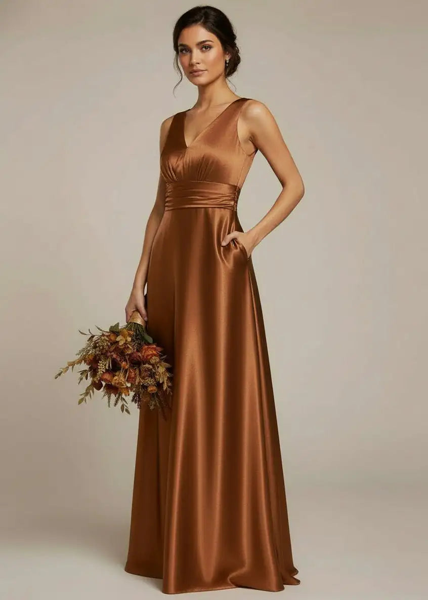 Heidi copper A line bridesmaid gown with pockets