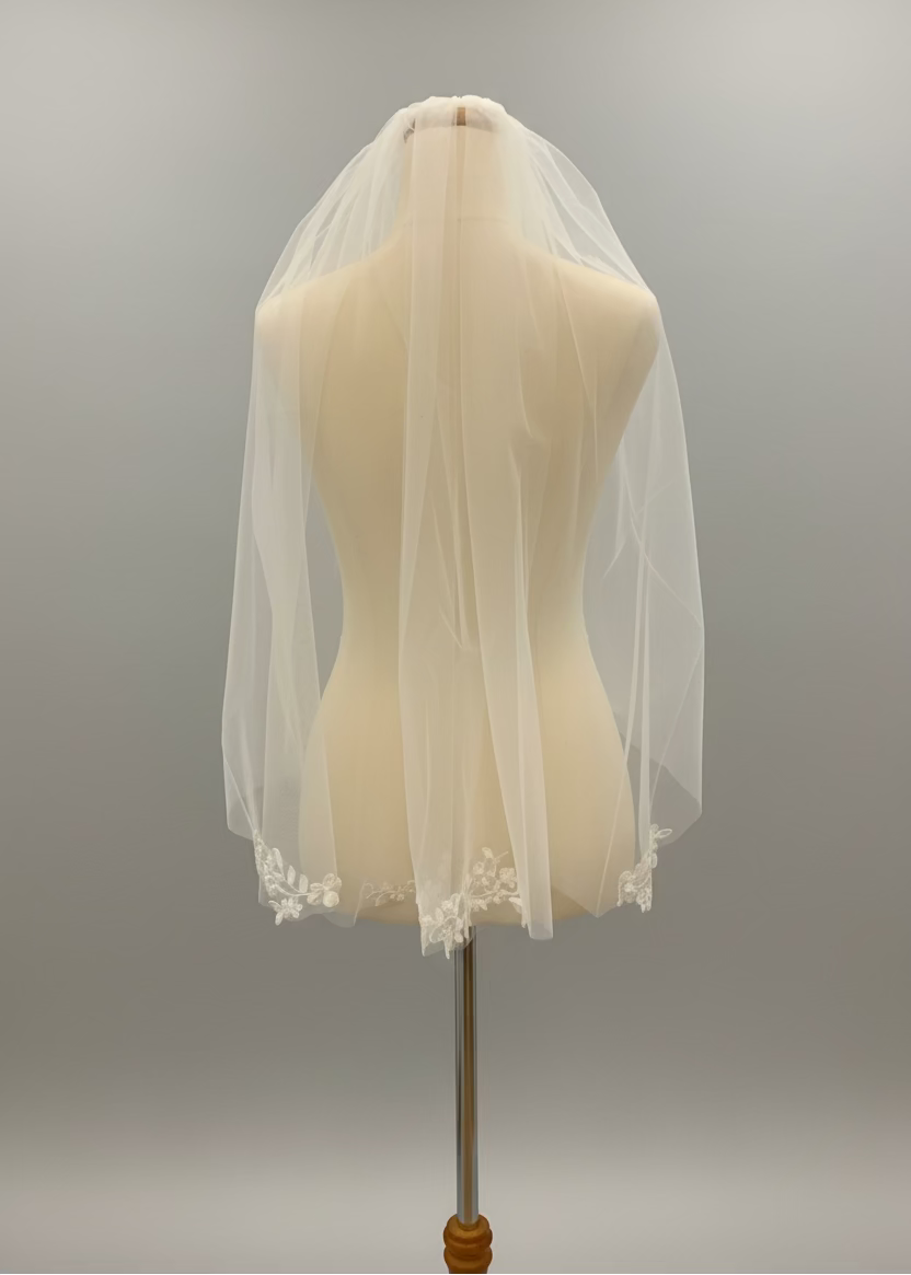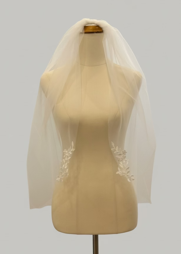 Elevate your bridal look with this stunning ivory veil, expertly designed to complement our collection of ivory wedding gowns. Measuring 75cm in length, it features delicate lace detailing that adds timeless elegance to any gown. The sturdy metal comb ensures secure placement throughout your special day, so you can focus on enjoying every moment. Perfect for New Zealand brides seeking that flawless finishing touch. Express delivery available nationwide.